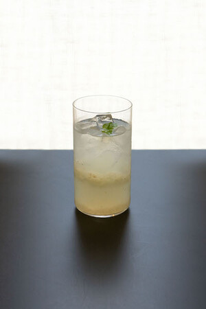 【第一弾】中国「ロンガンサイダー」。食感を感じられるようライチにも似た果実を粗めにカット。味付けはミントとシロップで。他、インド、リトアニアのドリンクを予定しています。