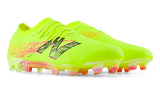 圧倒的な軽さが特長のストライカー向けスピードモデル「Furon Elite FG」がv8にアップデート。アッパーには細さを変えた糸をデータに基づいて編み込んだHYPOKNITを使用し、高いサポート性と優れた履き心地を提供します。FGモデルは狭いエリアを鋭い動きで打開できるようあらゆる角度への一歩目を最大化するT字に配置したスタッドを配置し、甲のストライクゾーンを広くクリアに確保した、NB史上最軽量のスパイクです。