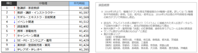 1.職種別平均時給(2022年3月)