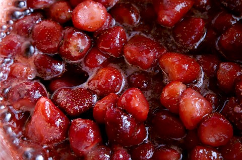 艶やかで真っ赤なゼリーは、苺にじっくり火を通して果汁と果実に分けてから仕立てています。果汁をしっかり煮詰めた後に再び果実を加えることで、苺本来の風味が引き立ち、華やかな果実味が溢れます。