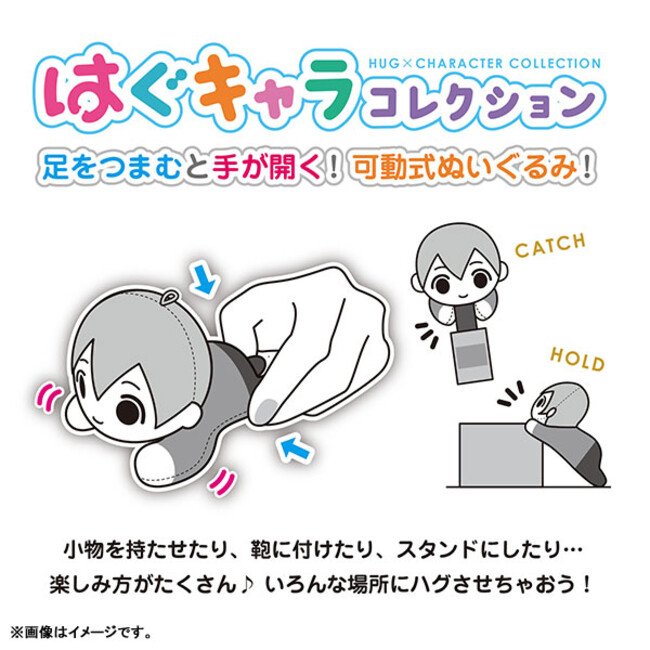 足の部分をつまむと、手が開いて物を掴むことができる可動式ぬいぐるみ!