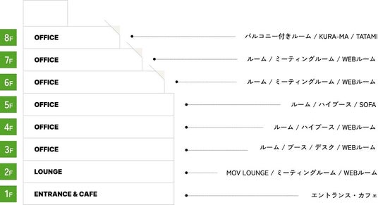 「MOV KURAMAE」は、コクヨが取り組む新規事業「不動産再生事業」の第1号案件として、8階建てのオフィスビルをリノベーションした、シェア型オフィスです。本事業ではコクヨが不動産の取得から企画、リノベーション、運営までを自社で一貫して行い、不動産のバリューアップを目指しています。