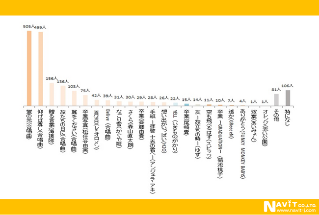 質問:卒業式に歌う曲と言えば何ですか?(複数回答可)(回答数:1971)