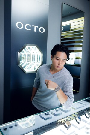 「『オクト』はとにかく薄くて、付け心地がよく、僕が好むスタイルにあうのでプライベートでも愛用しています。この時計を着けてローマやパリ、ソウルやバンコク、ロサンゼルスなどたくさんの旅をしたこともいい思い出です。ウォッチメイキングの世界で数多くの世界記録を打ち立ててきた歴代のオクトを、ここ表参道のポップインで実際に見ることができますので皆さまにもブルガリのオクトの魅力を体感していただけたらと思います」