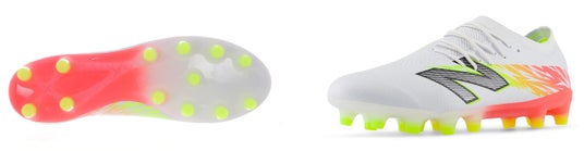 圧倒的な軽さが特長のストライカー向けスピードモデル「Furon Elite HG」がv8にアップデート。アッパーには細さを変えた糸をデータに基づいて編み込んだHYPOKNITを使用し、高いサポート性と優れた履き心地を提供します。HGモデルは狭いエリアを鋭い動きで打開できるようあらゆる角度への一歩目を最大化するT字に配置したスタッドを配置し、甲のストライクゾーンを広くクリアに確保した、NB史上最軽量のスパイクです。