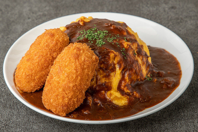 蟹の旨みと濃厚なホワイトソースが渾然一体となったクリーミーなコロッケは、ふわとろ卵とデミソースとのトリオが圧倒的な人気を誇っています。