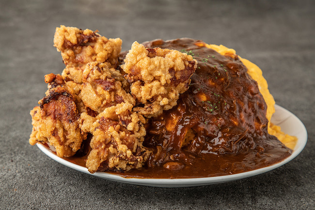 ご飯だけで既に1kg。卵とソース、トッピングの大きな唐揚げ6個の重量は別カウントなので、実は優に1kgを超えている規格外過ぎるオムライス。見た目インパクト優先に見えて、名だたる大食い系YouTuberの方をはじめとして完食者が続出という結果から、味こそが自慢でもある名物メニューです。