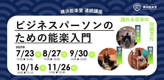 横浜能楽堂は、ビジネスパーソンを対象に、能楽の基礎から本質までを学ぶ全5回の連続講座を開催します。古典芸能に精通した講師のもと、能楽についての講義から始まり、第一線で活躍する能楽師によるワークショップや公演鑑賞に参加します。