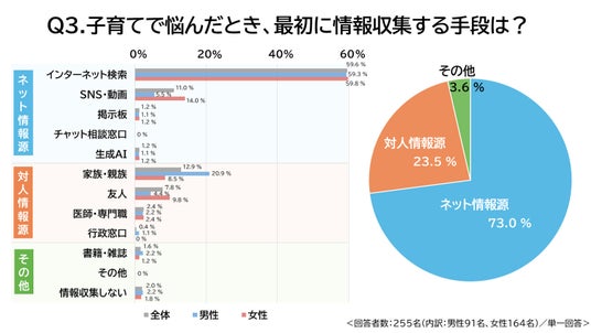 情報収集の最初の手段は「検索」や「SNS」等のネット系で73.0%。人への相談は後回しになりがち。