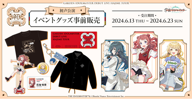 8月10日より開催される「学園アイドルマスター DEBUT LIVE 初 TOUR -初声公演-」の公式イベントグッズ事前販売が、6月13日から23日まで実施中です。