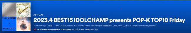 金曜日の夜。あなたの投票で決まるK-POPアイドルのオリジナル・チャートをカウントダウン形式でお届けする音楽番組!K-POPアイドル応援アプリ「IDOL CHAMP」の投票機能と連動し、リスナーの投票をもとにお送りします。