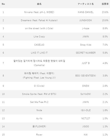 『IDOL CHAMP』内のファン投票ではこちらの結果となりました。