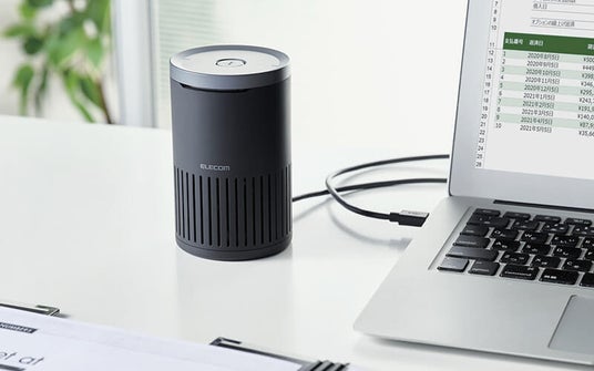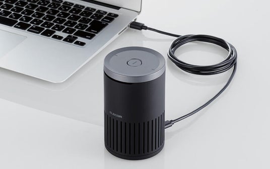 - 350ml缶ほどのサイズで円筒形デザインのため、デスクでも省スペースで設置可能です。