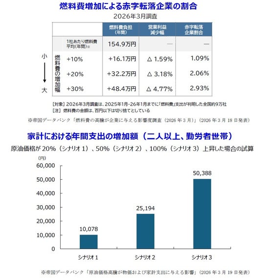 - 帝国データバンクの調査から原油価格の急騰が、企業や家計にとって大きな負担となることが予想されている