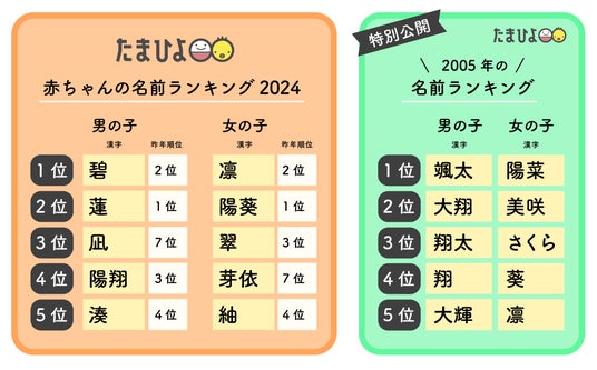 「たまひよ 赤ちゃんの名前ランキング」20年目を記念し、2005年のランキングを特別公開!