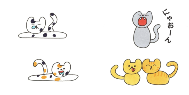 いろいろな表情の、柄の、鳴き声の、ねこがいて、みんなが集まったら、楽しいね。