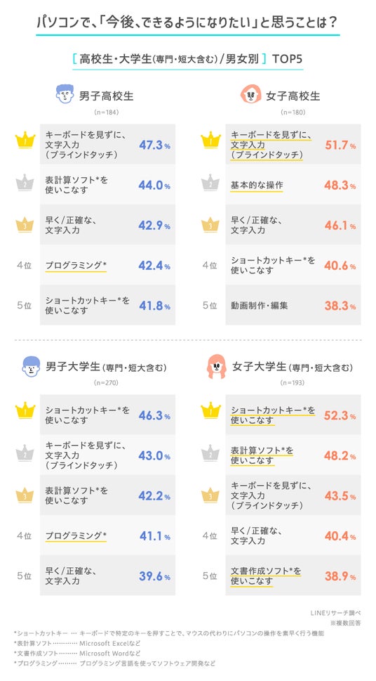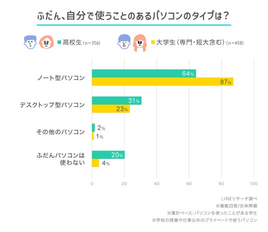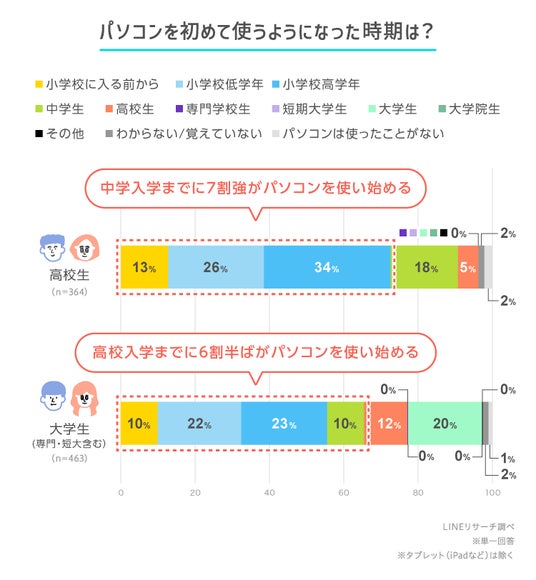 LINEリサーチ、全国の15~25歳の男女学生を対象に、パソコンを使い始めた時期やしていること、今後できるようになりたいことに関する調査を実施
