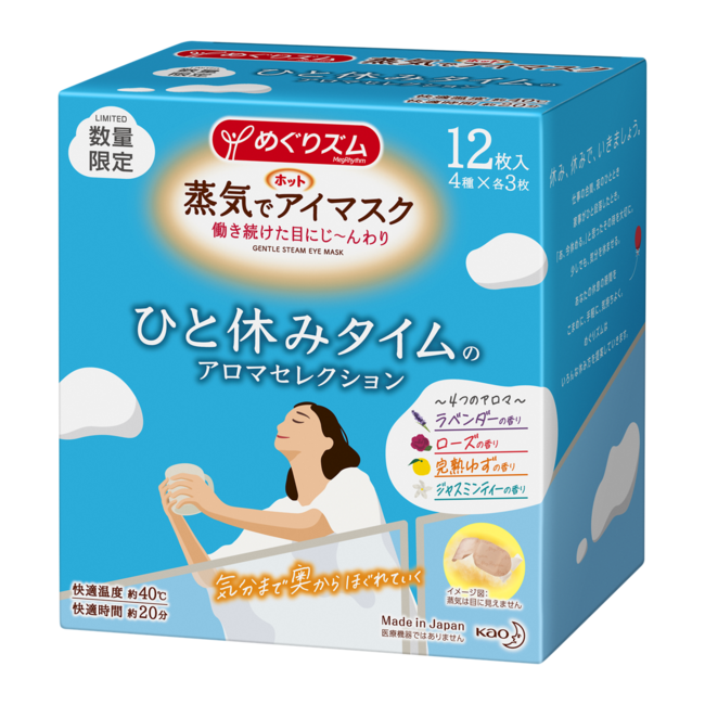 花王株式会社は、2022年3月12日(土)に、『めぐりズム 蒸気でホットアイマスク ひと休みタイムのアロマセレクション』を数量限定で発売いたします。