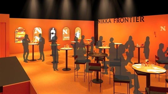 「NIKKA FRONTIER BAR」では、ブランドカラーのオレンジで統一された空間で『ニッカフロンティア』の世界観や魅力を五感で楽しめます。入口から約9メートルにわたるストーリーゾーンでは、モルト・ピート・オークの“香り”や石炭直火蒸溜の“音”が体感できる特別な展示を設置し、ニッカウヰスキーの歴史や『ニッカ フロンティア』のこだわりを訴求しています。飲用体験ゾーンでは、シグネチャードリンクである「ニッカ フロンティア フロートハイボール」や有名BAR監修のオリジナルカクテルを提供します。