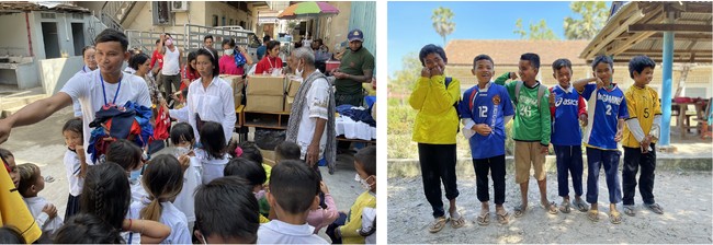 (3)一般財団法人CHANGアジアの子供財団(※)の協力のもと、カンボジア現地の小学校や児童施設11カ所にお届けする。(2022年1月~2月)