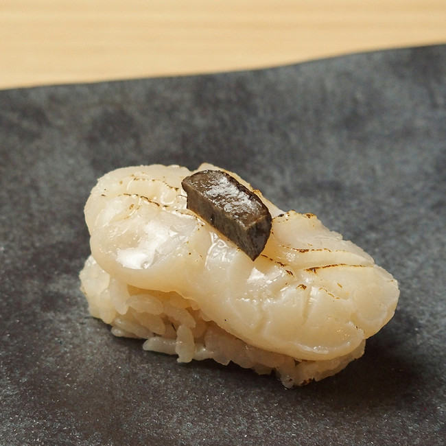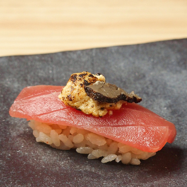 ■赤海老 他人の子持ち(一貫) ■鮪ロッシーニ風(一貫) ■炙り帆立 トリュフのせ(一貫)