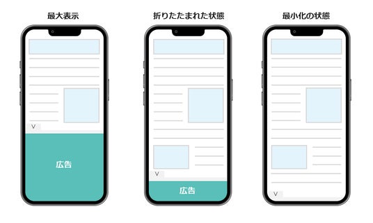 この実績を活かし、今回アイモバイルは、Google アドマネージャーのアンカー広告のベータ機能である「折りたたみ可能バナー」をいち早く提供いたします。このアンカー広告は市場の成長が著しい動画広告にも対応しており、アイモバイル独自のソリューションで最適化された配信を通じて、パブリッシャー様の収益向上を効果的に支援いたします。