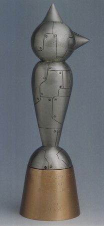 日本のマンガ文化の発展、向上に大きな役割を果たした手塚治虫氏の業績を記念し、志を継いでマンガ文化の健全な発展に寄与することを目的に、朝日新聞社が1997年に創設しました。年間を通じて最も優れた作品に贈る「マンガ大賞」のほか、「新生賞」「短編賞」「特別賞」があり、正賞の鉄腕アトム像(横山宏氏作)=写真=と副賞(大賞200万円、その他100万円)が贈られます。