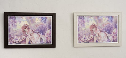 ずっしりとした木枠に収められた美しく輝くガラス製のミラー。ガラス製ミラーの特性に合わせた処理が可能にした、ポートレート写真のような奥行きのある立体的な表現。「大好き」の輪をつなぐ彼女とのプライスレスな時間。できたてのかわいさのとりこになる、色鮮やかな一枚がここに完成しました。「アイドルマスター」とは
