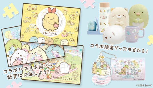 現在開催中の「ジグソーde懸賞」では、「すみっコぐらし」デザインの限定ジグソーパズルが楽しめるだけでなく、コラボ限定オリジナルグッズを含む「すみっコぐらし」グッズが当たる懸賞に応募することができます!