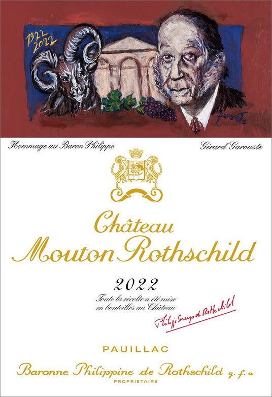 ジェラール・ガルースト氏が「フィリップ男爵へのオマージュ」とのタイトルで制作した『シャトー・ムートン・ロスチャイルド』2022年ヴィンテージのラベル