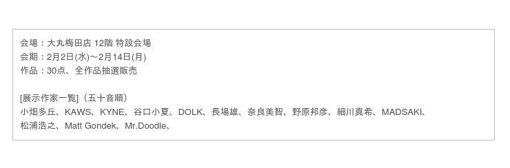 大丸松坂屋百貨店は、アートとアートを買うことの魅力をお届けする初のアートメディア「ARToVILLA(アートヴィラ)」を 2022年1月7日(金)にスタートしました。ARToVILLA(アートヴィラ)はアート所有の敷居を下げるコンテンツをオンラインと店頭で発信し、アート所有までの体験を届けるプロジェクトです。今回、展示会「SIGNS OF A NEW CULTURE Vol.3」をプロデュースし、2月2日(水)~2月14日(月)の期間、大丸梅田店で開催します。アートカルチャーを担う今人気のアーティストから、今後アートシーンを賑わせるであろうニューウェーブの作品まで30点を集積。アートの展示以外にも、ゲストを迎え「ギフトとしてのアート」をテーマにトークイベントの様子をオンラインにて配信します。