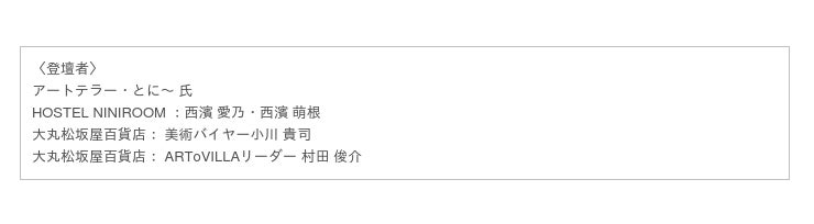 2月2日(水)~14日(月)まで大丸梅田店で開催するSIGNS OF A NEW CULTURE展開催に伴いARToVILLA(アートヴィラ)が企画した「ギフトとしてのアート」をテーマにトークイベントの様子をアートヴィラの特設サイトにて配信します。アートテラー・とに~氏、京都丸太町のHOSTEL NINIROOMを開業されている西濱 愛乃さん、萌根さん姉妹をゲストに迎え、実際のライフスタイルから「アートを贈る」「ギフトとしてのアート」などアートについてお話しいたします。