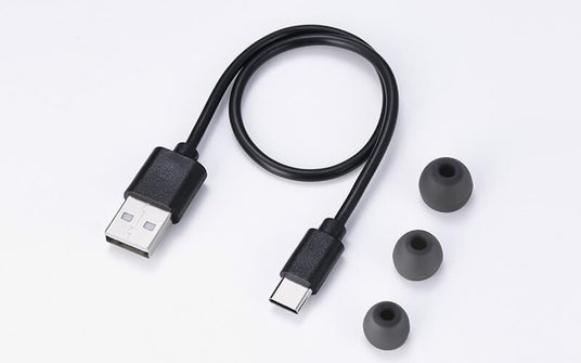 ▲ 充電ケーブルとイヤーキャップ(3サイズ)が付属