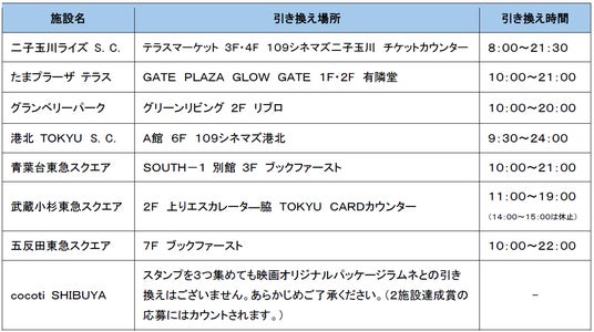 ※cocoti SHIBUYAはスタンプを3つ集めても映画オリジナルパッケージラムネの賞品の引き換えはございません。あらかじめご了承ください。(2施設達成賞の応募にはカウントされます。)