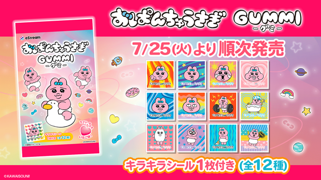 株式会社CyberZ(本社:東京都渋谷区、代表取締役社長:山内隆裕)の連結子会社、株式会社eStream(本社:東京都渋谷区、代表取締役社長:高井里菜)は、大人気キャラクター「おぱんちゅうさぎ」より、オリジナルシールが1枚おまけで付いてくる『おぱんちゅうさぎグミ いちご味』の発売を決定いたしました。2023年7月25日(火)より、全国のローソン、ファミリーマート、eStream Storeにて販売を開始いたします。