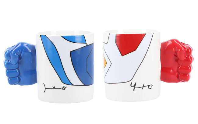 お互いを認め、助け合い、共に戦ったウルトラヒーロー、ウルトラマンメビウスとウルトラマンヒカリをイメージしたペアマグカップが発売となります。カップの表面には、変身アイテムであるメビウスブレスとナイトブレスがそれぞれデザインされ、裏面には各ヒーローのサインがプリントされています。持ち手は拳の形で、拳と拳を突き合わせると、まるでフィスト・バンプしているようで、メビウスとヒカリの絆を感じられるアイテムです。