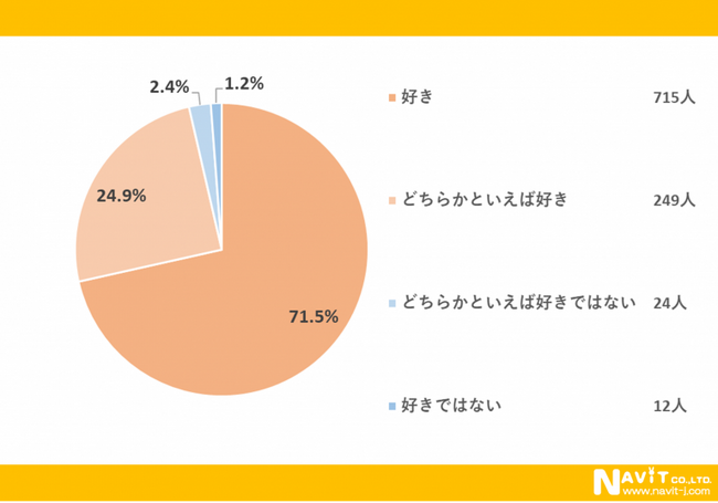 いちごが好きかどうかについては、「好き」が71.5%、「どちらかといえば好き」が24.9%と、合わせると96.4%の人が好きだと回答していました。いちごが好きな人が9割以上いらっしゃるのですね。