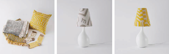 柚木さんがイデーのために描き下ろした図案「アルファベット」「シマウマ」をジャガードやプリントなどでテキスタイルに。クリスマス限定のとても楽しいインテリアアイテムが完成しました。