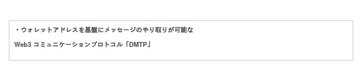 DMTP社が提供しているこのプロトコルは、ユーザーがWeb3ウォレットアドレス基盤のメッセージのやり取りを行うコミュニケーションツールで、最高のWeb3 コミュニケーション環境をサポートします。