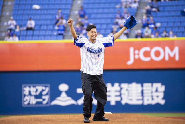 本プロジェクトの一環として、横浜スタジアムで行われた「横浜DeNAベイスターズ」対「福岡ソフトバンクホークス」戦で開催されたJ:COMスペシャルナイターにて、瑛人さんが人生初めての始球式に挑戦。ボールはキャッチャーミットに入る直前でワンバウンドしましたが、スタンドからは大きな拍手が送られました