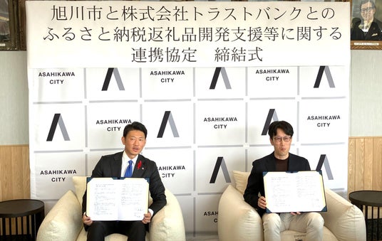 北海道旭川市(市長:今津 寛介、以下「旭川市」)と国内最大級のふるさと納税総合サイト「ふるさとチョイス」を企画・運営する株式会社トラストバンク(本社:東京都品川区、代表取締役:川村憲一、以下「トラストバンク」)は、本日10月18日(金)、ふるさと納税のお礼の品開発支援に関する連携協定を締結いたしました。本協定により、日本を代表する「旭川家具」をはじめとした地場産業への貢献を強化していくほか、地場ブランドの開発・販路拡大や、寄附金の使い道に関する情報発信等の強化においても連携することで、地域経済のさらなる発展に貢献してまいります。