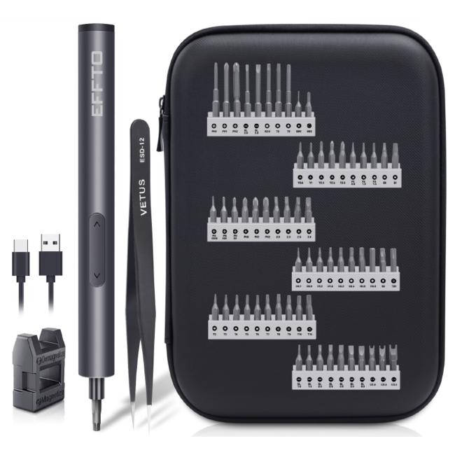 DIYにもおすすめ!60種類のビット付属の小型電動ドライバー【60種類の豊富なビット/手元が見やすいLEDライト搭載/充電式】