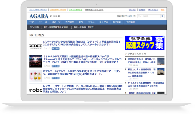1.「AGARA紀伊民報」に和歌山県と近接府県に関するプレスリリースコンテンツを掲載