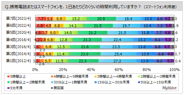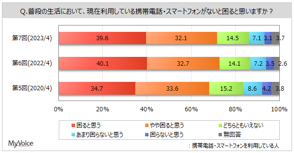 マイボイスコム株式会社(東京都千代田区、代表取締役社長:高井和久)は、7回目となる『携帯電話・スマートフォンとライフスタイル』に関するインターネット調査を2023年4月1日~5日に実施しました。調査結果をお知らせします。