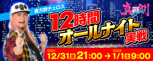 アイテム・スキル使用不可、設定ランダムの「真剣STAGE」で貴方野チェロスさんが大晦日から元旦にかけて12時間のオールナイト生放送!