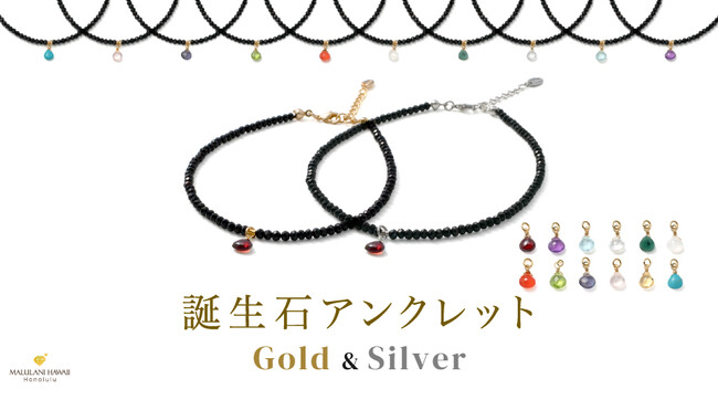 ハワイ発祥の天然石アクセサリーブランド「マルラニハワイ」より、漆黒の上質なオニキスをスタイリッシュに仕立てた「誕生石アンクレット Gold&Silver」を発売開始いたしました。