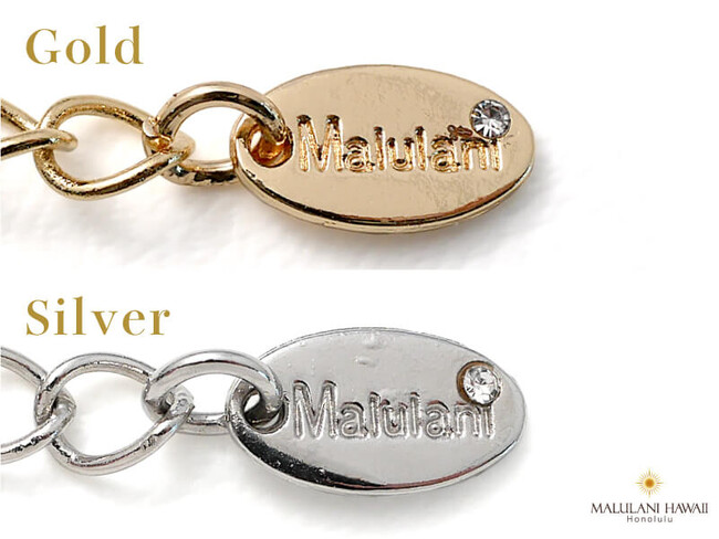 オリジナルチャームと水晶には、ハワイ語で「神に護られた」という意味を持つ「Malulani」と刻印。