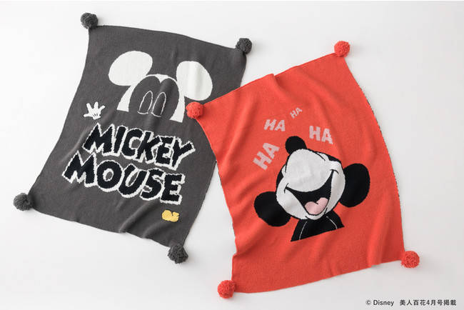 ルームウェアと合わせて楽しみたいブランケット。愛らしいMICKEYのフェイスモチーフをバリエーションであしらったハッピーなデザイン。四隅のポンポンがアクセントになり、インテリアを華やかに彩ります。