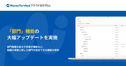 株式会社マネーフォワードは、『マネーフォワード クラウド会計Plus 』において「部門マスタ機能」を大幅にアップデートしました。部門階層の拡大や非表示機能など、組織体系の変更にすばやく対応できる機能を提供するほか、部門の事前メンテナンスが可能になるなど、担当者の業務負荷を削減できます。