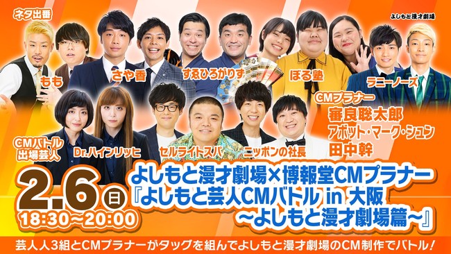 よしもと漫才劇場に所属する芸人3組と博報堂関西支社で活躍するCMプラナーが